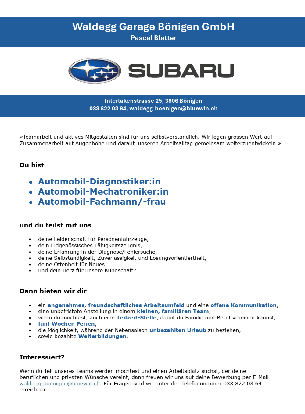 Erfahrung auf allen Subaru-Typen